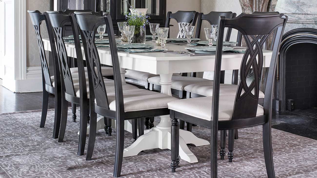 •solid birch construction •options in shape, style and size •options in base/legs, leaves, top edge •fabric and leather options •multiple finish options shape and size options to fit any dining or kitchen area needs.